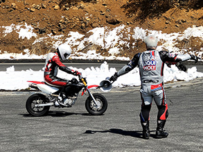 ・バイクを東コースで運んだあとはスタッフが車でスクールコースまで送迎します。